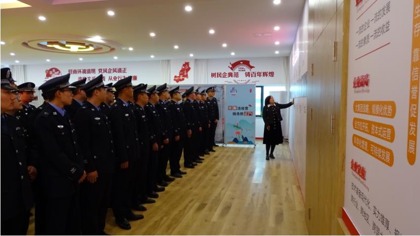 膠州市公安局青年民警輔警代表一行首先來到集團中啟文化展廳,在集團工會主席劉博的引領(lǐng)講解下,他們詳細(xì)了解了集團黨建、清廉民企、勞模工匠、職工之家等企業(yè)文化,并參觀了企業(yè)的榮譽室。