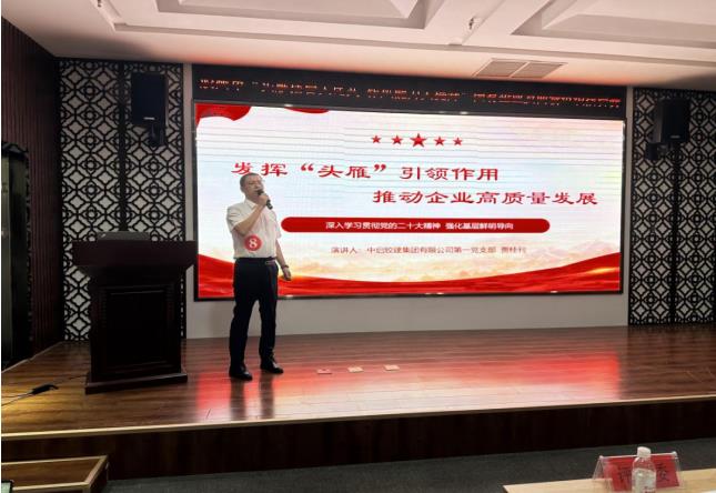 擂臺(tái)賽上,中啟膠建集團(tuán)第一黨支部書記賈桂刊演講主題是《發(fā)揮“頭雁”引領(lǐng)作用 推動(dòng)企業(yè)高質(zhì)量發(fā)展》,講述黨建工作深入基層、深入項(xiàng)目工地,大力開展“干一個(gè)工程,樹一座豐碑”黨建品牌創(chuàng)建活動(dòng),在企業(yè)建設(shè)中積極發(fā)揮思想引導(dǎo)、政治引領(lǐng)作用,為推動(dòng)企業(yè)實(shí)現(xiàn)高質(zhì)量發(fā)展奠定堅(jiān)實(shí)基礎(chǔ)。