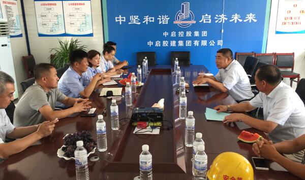 2017年7月14日上午,青島膠東國際機(jī)場建設(shè)指揮部紀(jì)委書記、工會(huì)主席戴建立一行11人來到青島新機(jī)場項(xiàng)目部,開展黨群工作交流及對(duì)現(xiàn)場施工管理人員關(guān)懷慰問。中啟膠建集團(tuán)常務(wù)副總馬振聲及項(xiàng)目部負(fù)責(zé)人薛長青參加了座談會(huì)。