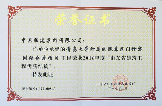 青醫附院東區門診實訓樓項目是中啟膠建集團建筑七公司施工的一項省、市重點工程。該項目開工以來,克服施工現場狹窄、施工工期緊、施工工程量大等重重困難,優質、快速的完成既定任務。期間榮獲了青島市優質工程、山東省優質結構、青島市綜合管理清單樣板工程、山東省安全文明工地、山東省綠色科技示范工程等多項榮譽,并成功舉辦了“青島市建筑工程質量提升行動作為示范工程”觀摩會一項。