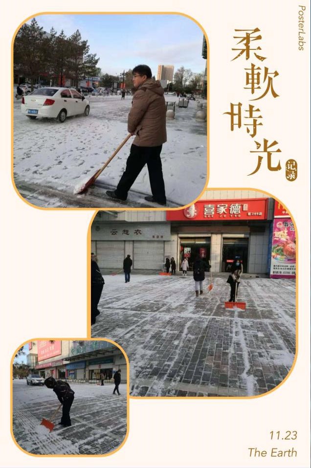 經過不到一個小時的戰斗,積雪不知不覺的讓大家伙給清理干凈了,道路也漏出了它原來的樣子,好像也漏出了笑臉。雖然我們員工的衣服臟了,鞋子也濕了,但是為了咱們的顧客和員工,開辟通暢的道路,我們每個人臉上都洋溢著笑容,好美的一幅畫,真的很溫暖很欣慰。
