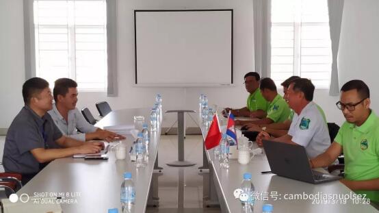 2019年3月19日,柬埔寨國家環保部和桔井省環保局官員一行5人到訪桔井省經濟特區,特區總經理賈東飚和工作人員熱情接待了環保部官員一行。