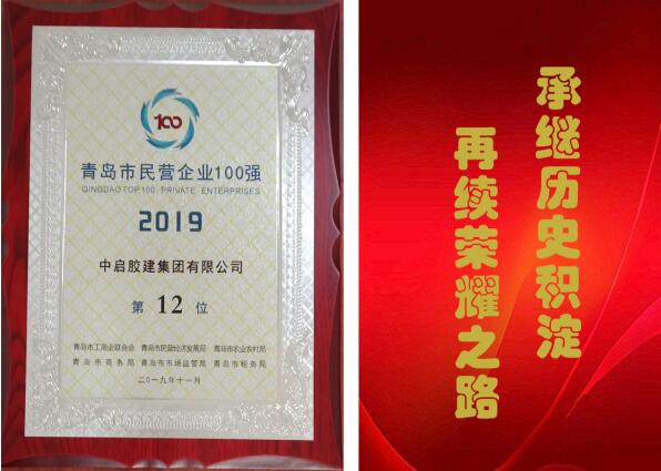再續(xù)榮耀之路!中啟膠建集團(tuán)喜獲青島民企百強(qiáng)第12位