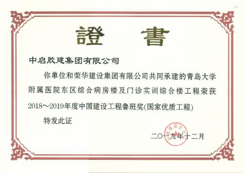 12月10日,由中國建筑業(yè)協(xié)會(huì)組織的“建筑業(yè)科技創(chuàng)新暨2018~2019年度中國建設(shè)工程魯班獎(jiǎng)(國家優(yōu)質(zhì)工程)表彰大會(huì)”在北京隆重召開。建筑七公司承建的“青島大學(xué)附屬醫(yī)院東區(qū)綜合病房樓及門診實(shí)訓(xùn)綜合樓工程”喜獲國家質(zhì)量最高獎(jiǎng)項(xiàng) “魯班獎(jiǎng)”。