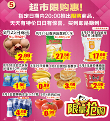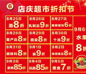 活動一:超市會員4倍積分。活動時間:8月29日-8月30日;9月5日-9月6日。