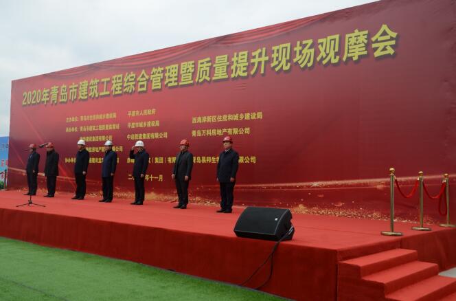 11月20日上午9:00,青島市住房和城鄉(xiāng)建設(shè)局組織的2020年青島市建筑工程綜合管理暨質(zhì)量提升現(xiàn)場觀摩會在中啟膠建集團建筑七公司施工的易邦生物科技產(chǎn)業(yè)園項目現(xiàn)場勝利開幕。青島市住房和城鄉(xiāng)建設(shè)局副局長劉玉勇,青島高新區(qū)管委副主任、工委委員蒲洪強,青島市建筑工程質(zhì)量監(jiān)督站副站長崔浩等出席了此次活動。觀摩會為期兩天,截至11月20日下午5時,青島市及各區(qū)市住房和城鄉(xiāng)建設(shè)主管部門、全市建筑工程質(zhì)量監(jiān)督機構(gòu)和建設(shè)、施工、監(jiān)理企業(yè)項目負(fù)責(zé)人、質(zhì)量技術(shù)負(fù)責(zé)人代表等760余人參加了此次觀摩會。