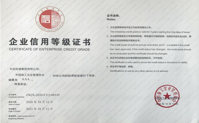 此次開展2020年度工程建設企業(yè)社會信用評價工作,旨在進一步完善工程建設企業(yè)信用評估工作,對工程建設企業(yè)信用評估工作實行動態(tài)、有效管理。中啟膠建集團于2017年度被授予“中國工程建設信用評價AAA級企業(yè)”,今年通過復評,鞏固了企業(yè)的社會形象,提高了在行業(yè)內的信譽度和知名度。