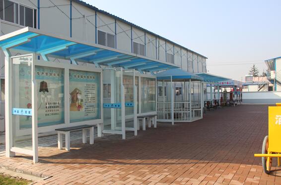 現(xiàn)場(chǎng)設(shè)置職工休息區(qū)、吸煙喝水亭、安全文化宣傳欄