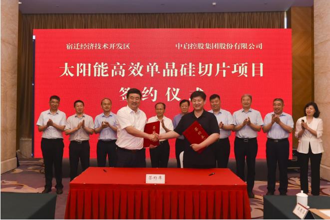 6月6日上午,中啟控股集團與江蘇省宿遷市經(jīng)濟技術(shù)開發(fā)區(qū)管委會就年產(chǎn)25GW太陽能高效單晶硅切片項目舉行簽約儀式。集團董事局主席張啟榮,董事局副主席、總裁張增昌,常務(wù)副總裁郭道盛,副總裁張桂香,副總裁馬振聲,宿遷市副市長、經(jīng)開區(qū)黨工委書記張輝,經(jīng)開區(qū)黨工委副書記、管委會副主任王峰等領(lǐng)導(dǎo)參加項目投資座談交流并出席簽約儀式。