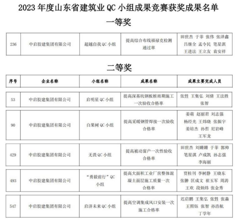 7月7日,山東省建筑業協會和山東省建設工會公布了QC獲獎成果。集團9項QC成果獲獎。