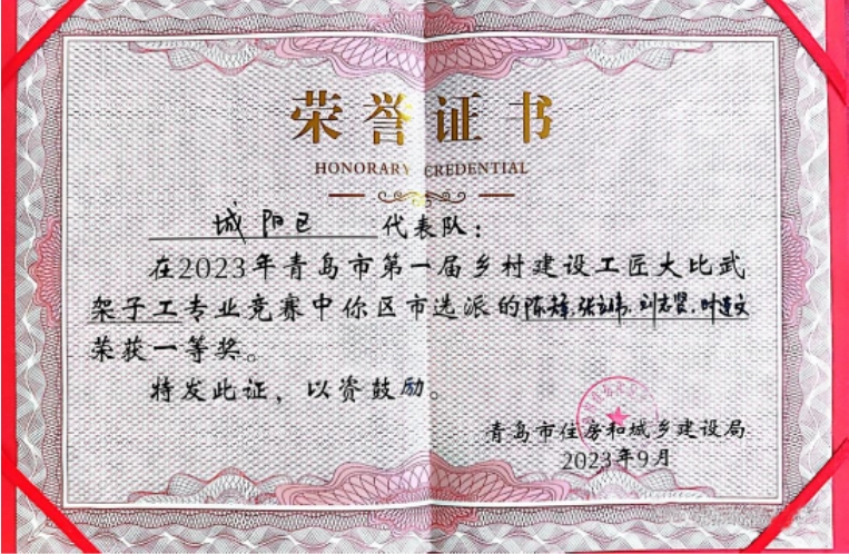 9月22日,青島市首屆鄉村建設帶頭工匠培訓暨第一屆鄉村建設工匠比武大賽完美落幕,中啟膠建集團華東公司代表城陽區選派的參賽選手在比賽中表現突出,成績優異。
