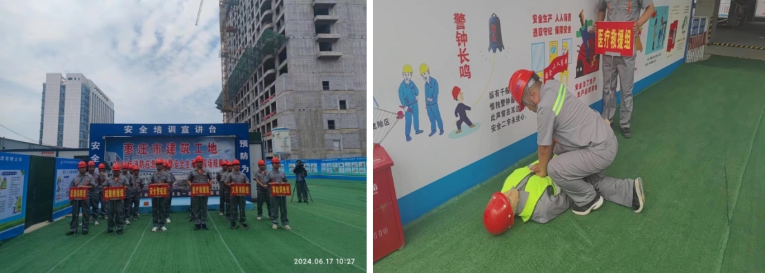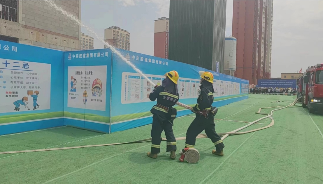今年6月是全國第23個“安全生產(chǎn)月”。為深入貫徹習近平總書記關(guān)于防災(zāi)減災(zāi)救災(zāi)重要指示精神,進一步提升建筑工地消防預(yù)警研判、響應(yīng)聯(lián)動、快速處置和應(yīng)急救援能力,2024年6月17日,公司在承建的嶧城區(qū)人民醫(yī)院改擴建項目舉辦棗莊市建筑工地消防應(yīng)急演練活動暨嶧城區(qū)住建系統(tǒng)安全月現(xiàn)場觀摩會。嶧城區(qū)委常委、副區(qū)長張強等領(lǐng)導以及相關(guān)單位負責同志參加活動。