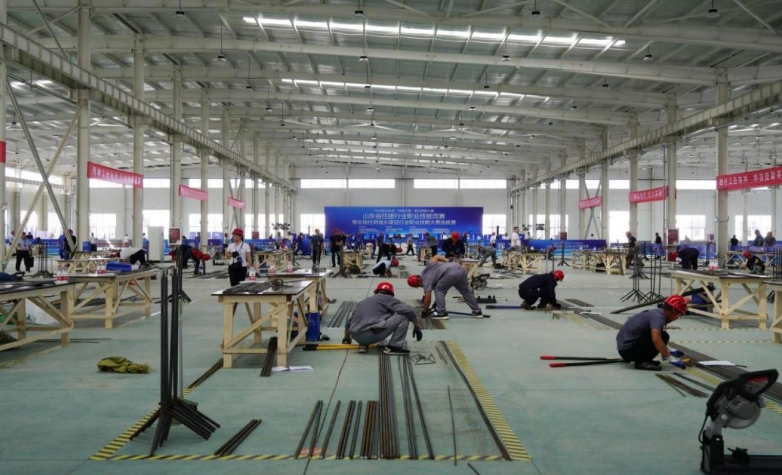 本屆大賽作為省級一類職業技能賽事,涵蓋了建筑信息模型技術員、砌筑工、鋼筋工、防水工、管工五大專業賽項,共有來自山東省各地市的16支精英隊伍參加。大賽緊密圍繞新質生產力發展需求,致力于培養高素質技能人才。此次在青島上合示范區舉辦的賽事,是鋼筋工與管工兩大主力賽項。