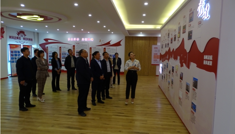 調研組一行先到集團貴賓接待室座談,隨后參觀了集團企業文化展廳,了解企業發展現狀、黨建工作基本情況等。