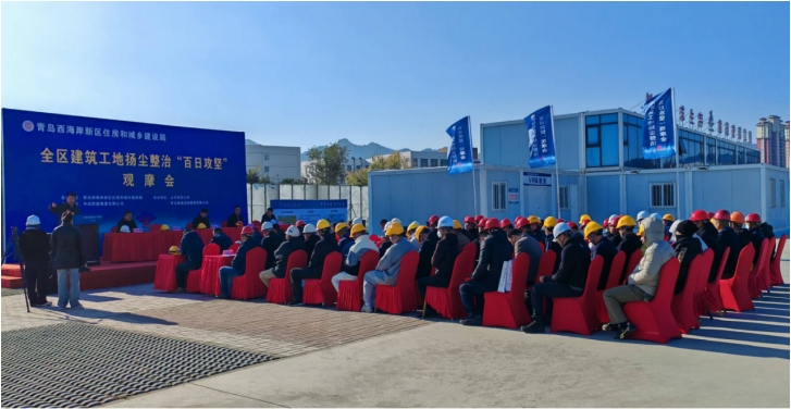 為貫徹落實省、市關于大氣污染治理工作部署要求,進一步提升建筑施工揚塵治理水平,12月6日,青島西海岸新區(qū)建筑工地揚塵整治“百日攻堅”觀摩會在公司承建的山東科技大學科技創(chuàng)新中心項目現(xiàn)場舉行。青島西海岸新區(qū)住房和城鄉(xiāng)建設局建管中心副主任馬軍,中啟膠建集團副總經(jīng)理劉堯、建筑九公司副經(jīng)理張志昌以及青島西海岸新區(qū)各建筑項目的施工、監(jiān)理單位代表總計200余人參加活動。