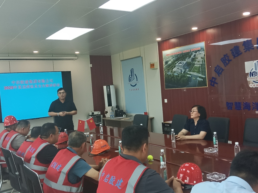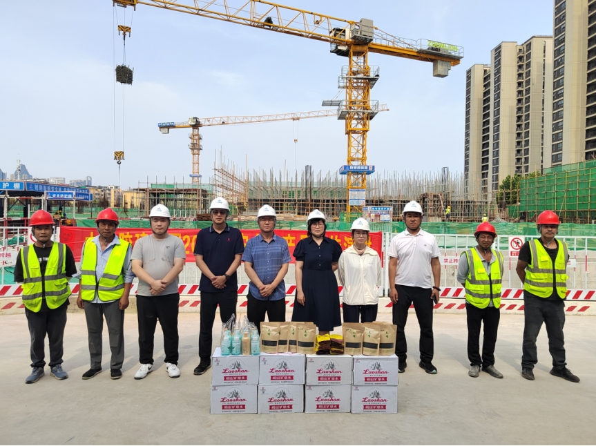 演講結束,工會主席劉博代表公司向各工地發放了洗漱用品及防暑降溫用品等,表達了公司領導對一線工人的關懷。