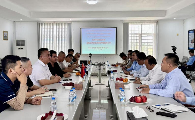 11月11日上午,柬埔寨東北地區(qū)投資促進(jìn)工作組代表SIM VIREAK閣下,以及柬埔寨發(fā)展理事會(huì)(CDC)、商務(wù)部、海關(guān)、勞工局等多個(gè)相關(guān)部門(mén)代表,蒞臨桔井省經(jīng)濟(jì)特區(qū)進(jìn)行考察訪(fǎng)問(wèn)。中啟海外公司總經(jīng)理張祿澤熱情接待了考察團(tuán)一行,并同各部門(mén)代表進(jìn)行了座談交流,雙星(柬埔寨)輪胎有限公司、福麥斯(柬埔寨)輪胎有限公司、華中能源科技有限公司等特區(qū)入駐企業(yè)代表共同出席了會(huì)議。