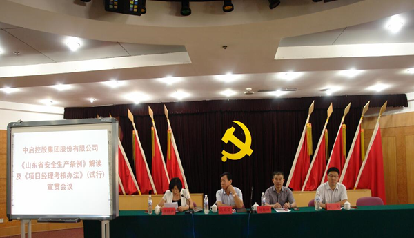 為全面落實主體責(zé)任,強化各級安全思想意識,確保安全生產(chǎn),提高項目經(jīng)理主觀能動性, 2017年6月17日上午生產(chǎn)計劃部組織集團各單位負(fù)責(zé)人、分管經(jīng)理、安全管理人員、 項目經(jīng)理和項目安全主管學(xué)習(xí)了《山東省安全生產(chǎn)條例》和《項目經(jīng)理考核辦法》,會議由中啟控股集團監(jiān)事會主席張桂香主持。