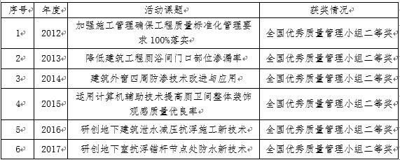 截至2017年7月,建筑七公司QC小組開展的群眾性質量管理活動已連續六年被評為國家級優秀QC成果。