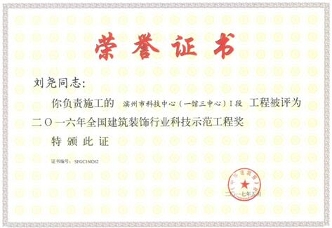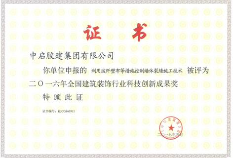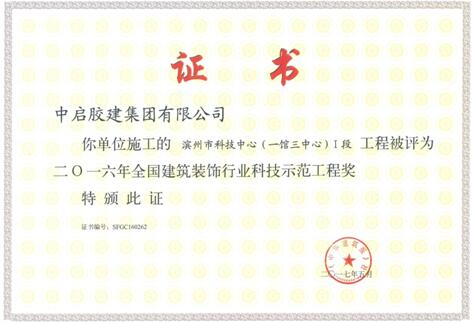 日前,2016年度全國科技創(chuàng)新成果、示范工程獎(jiǎng)評選結(jié)果揭曉,我公司施工的濱州市科技中心(一館三中心)Ⅰ段榮獲2016年全國建筑裝飾行業(yè)科技示范工程獎(jiǎng),《廚衛(wèi)間整體裝飾施工技術(shù)》、《利用玻纖壁布等措施控制墻體裂縫施工技術(shù)》、《一種幕墻玻璃安裝方法及所用的玻璃托架》三項(xiàng)新技術(shù)被評為2016年全國建筑裝飾行業(yè)科技創(chuàng)新成果獎(jiǎng)。